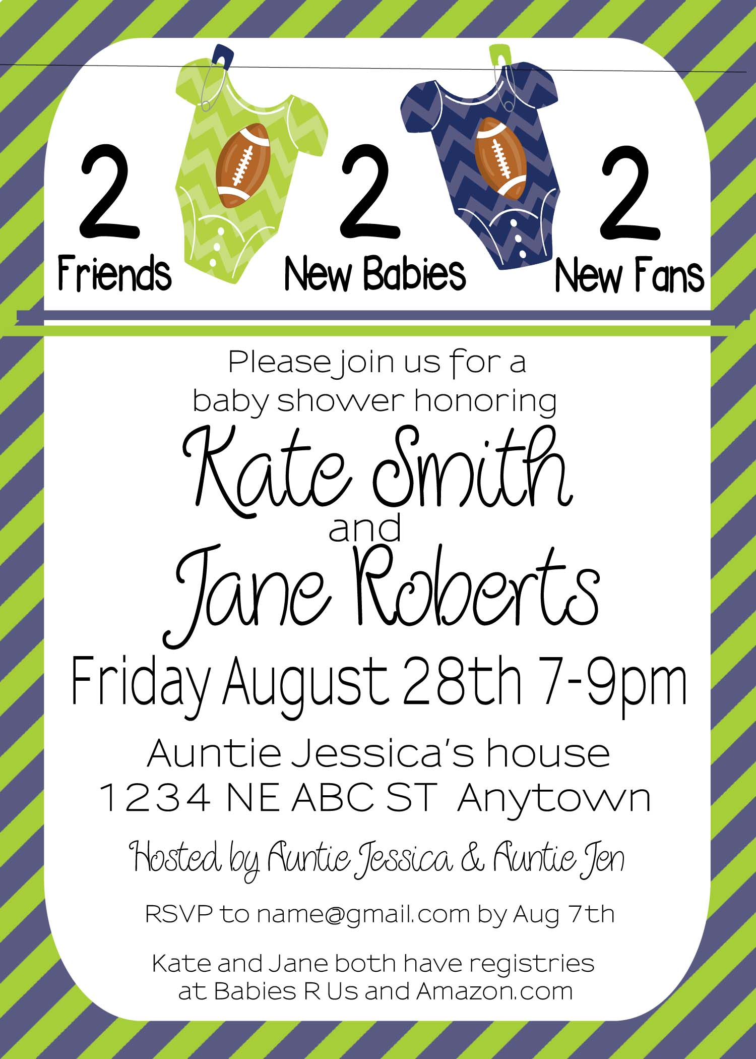 With friends, I threw a double baby shower for two of our friends. I designed the printable decor with a fun football theme! Being in the Seattle the colors of course had to be green and blue for the Seahawks. It was a fun way to celebrate our friends new baby boys!