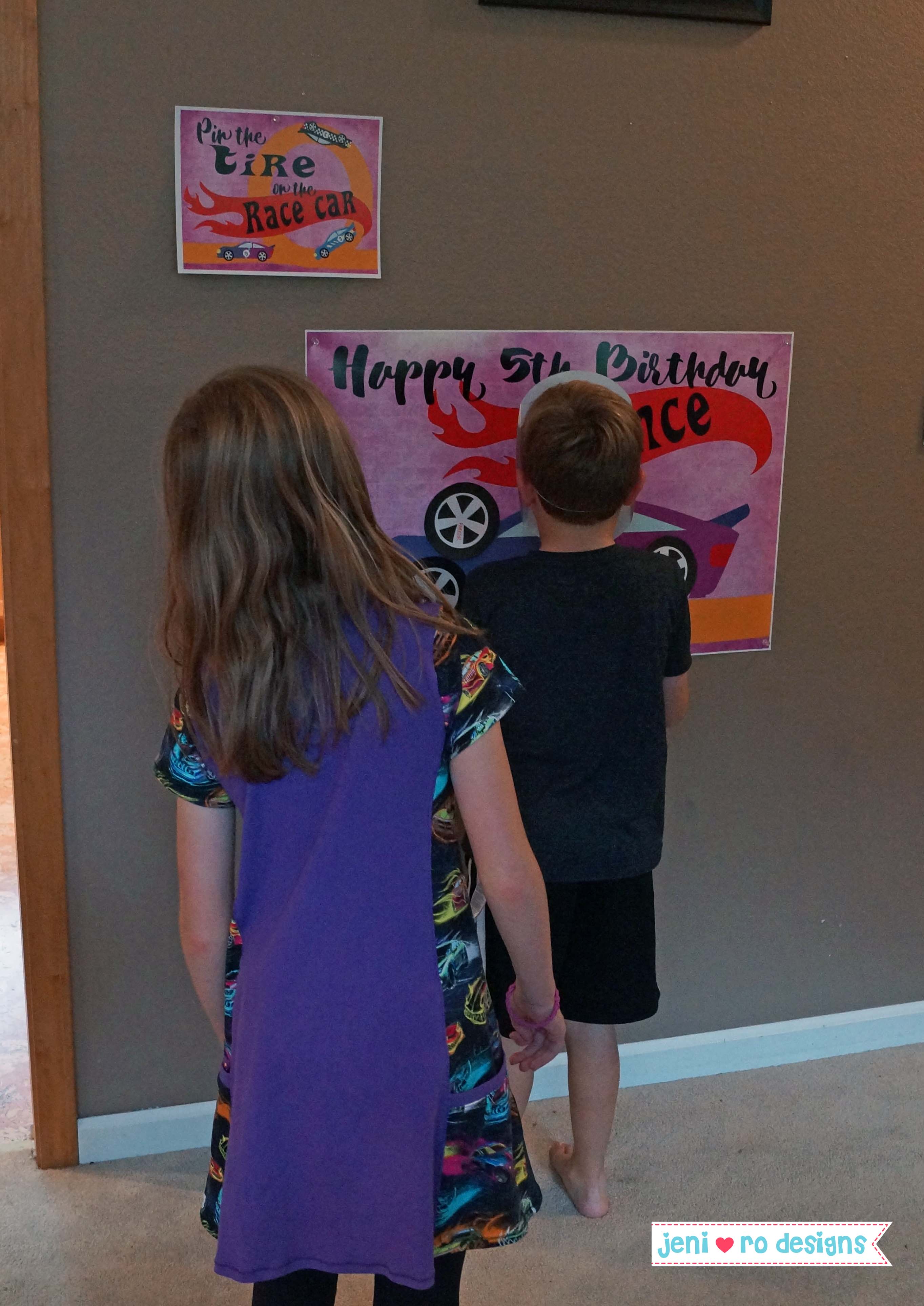 The first game we played was my go to party game, Pin the Tire on the race car! This printable game is easy to print and put together and is available in my shop!